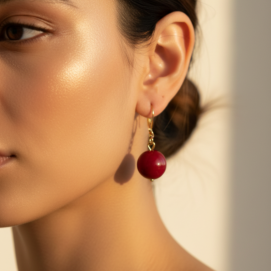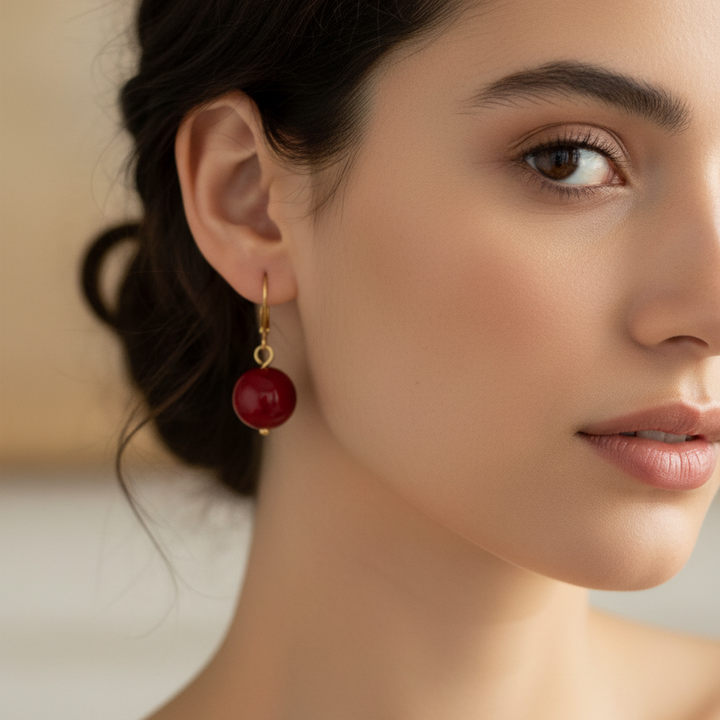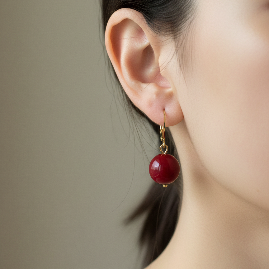 . 0.47” approx. Glossy Red Stone Beads
